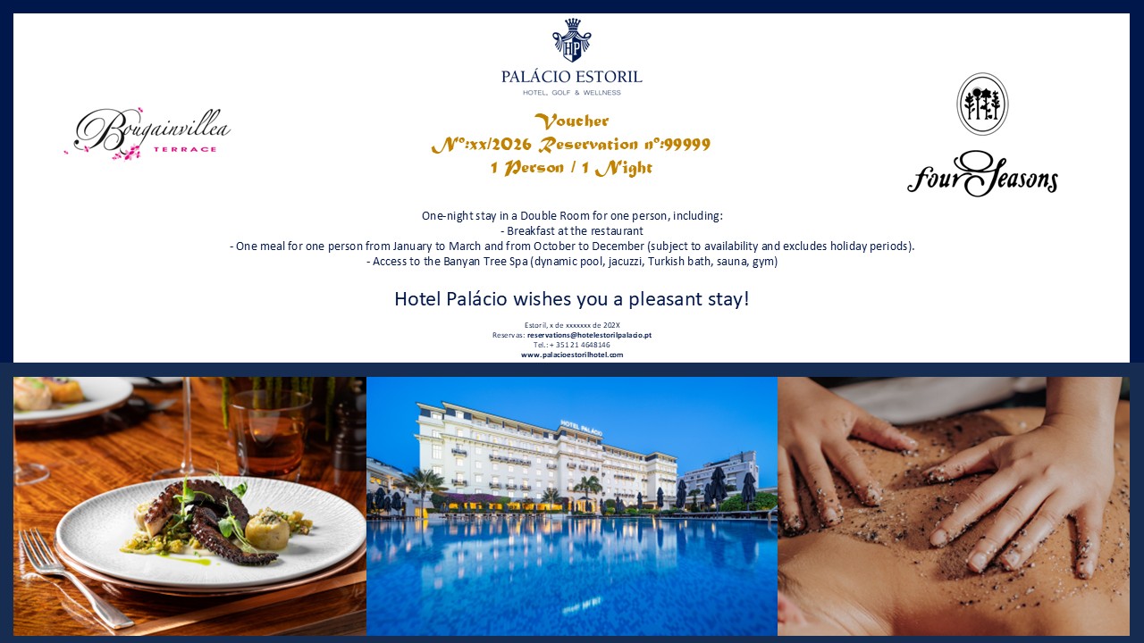 - Uma refeição para uma pessoa, bebidas não incluidas, de Janeiro a Março ou de Outubro a Dezembro (mediante disponibilidade e exceto em períodos festivos).